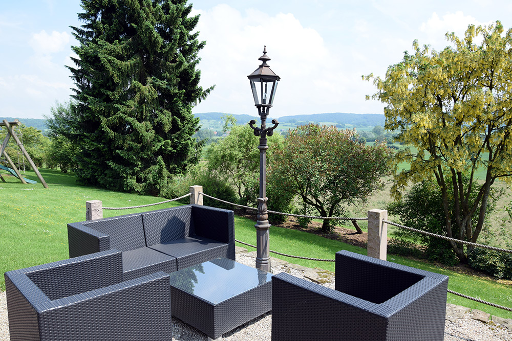 Dieser Ort ist ein Platz zum Träumen: Ganz oben am Waldrand des Rosenberges sind Verkehr, Lärm und Hektik ganz weit weg. Im Sommer wiegen sich die Bäume leicht im Wind, zwitschern Vögel munter durcheinander, summen Hummeln und Bienen im hübschen Garten. Der grandiose Ausblick von der Terrasse des Hotel-Restaurants auf den gegenüberliegenden Hang der Emde und das romantisch anmutende Aabachtal macht zu jeder Jahreszeit das Herz ganz weit. Sitzen, Schauen und Genießen. Wie ein bisschen Dolce Vita in Ostwestfalen.