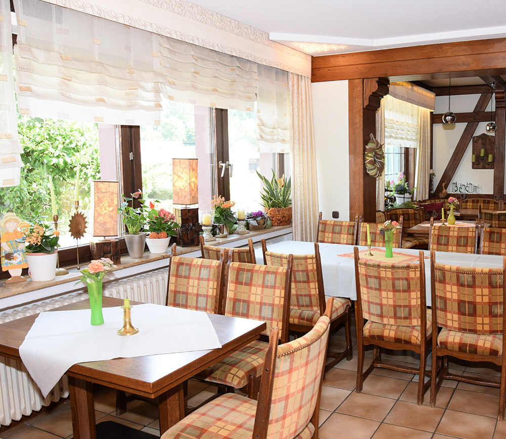 Regionale Spezialitäten: Nieheimer Käsespezialitäten, Hausmacherplatte mit hausgemachten Wurstsorten, Forelle „Müllerin“, Rumpsteaks, Schnitzelspezialitäten, Landhaus-Sülze, hausgemachte Waffeln.